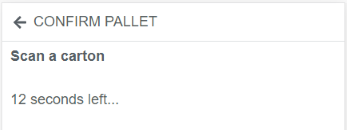 Scan any carton on the pallet, you have 15 seconds to do so. This will confirm you have the correct pallet card.
