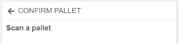 If you have ticked the option to Print pallet card?, retreive this from the printer and place on the physical pallet. You will be taken to a Confirm pallet screen which verifies you have the correct pallet card with the correct cartons.