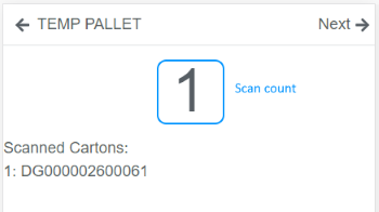 Scan cartons to create a temporary pallet. Often used at the end of the day to record cartons that have not made a complete pallet. Cartons can be re-palletised from a temporary pallet to a final pallet.